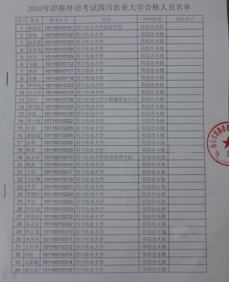 年全国职称外语等级考试成绩已经公布,请通知你单位成绩合格人员持有效证件于